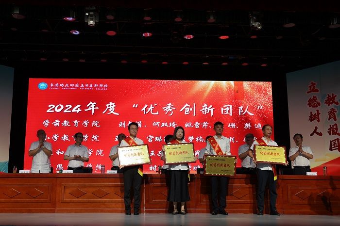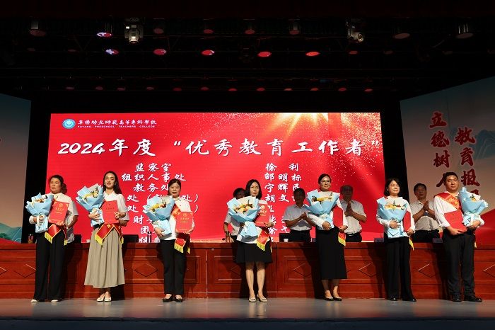 会上,校党委委员、纪委书记刘海涛带领新入职教师进行了入职宣誓;校党委副书记于华献宣读了《关于开展 2024年师德师风标兵、优秀教师、优秀教育工作者、优秀辅导员、优秀创新团队评选表彰工作的通知》,对丁传杰等6名“师德师风标兵”、马慧等15名“优秀教师”、王芮等15名“优秀教育工作者”、于静等6名“优秀辅导员”、小学教育专业创新团队等4个“优秀创新团队”予以表彰,并现场为先进集体和先进个人颁奖。