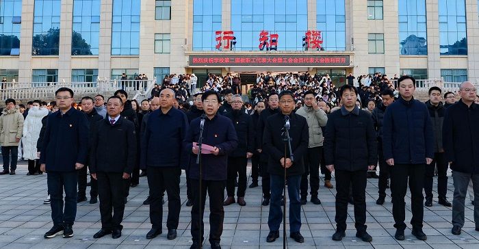 2月24日,我校举行“向‘新’而行 以‘质’致远”主题升旗仪式。校党委书记董志诚出席活动并为师生作“开学第一课”报告,校党委副书记、校长汤志主持仪式,校领导于华献、刘海涛、刘明、沈辉、徐常恺、梁晨及全体教职员工、在校学生参加升旗仪式。