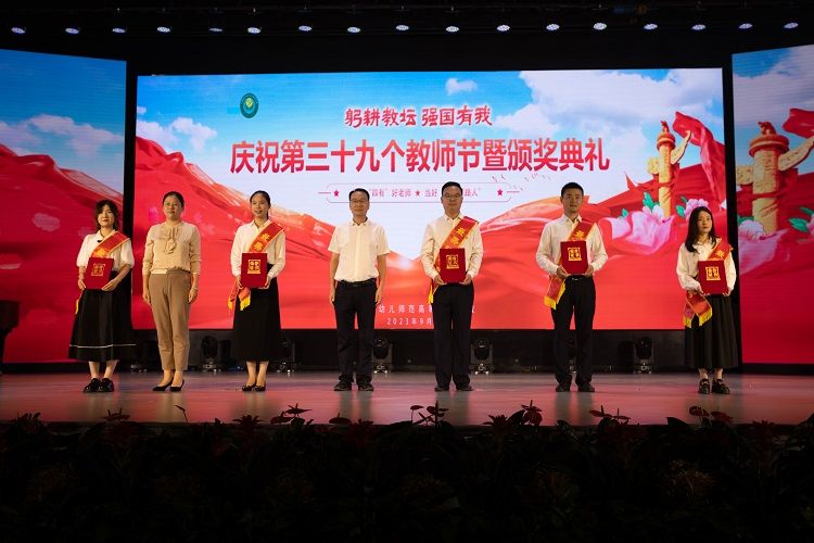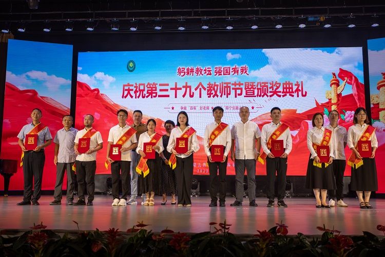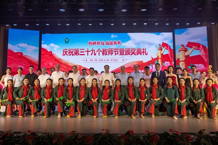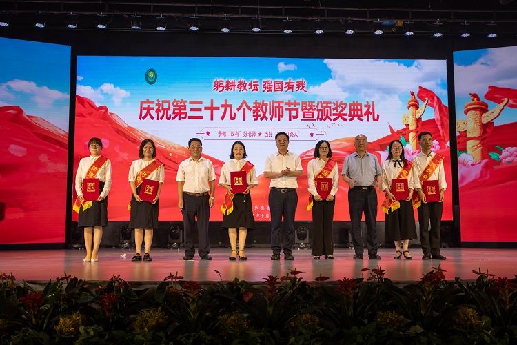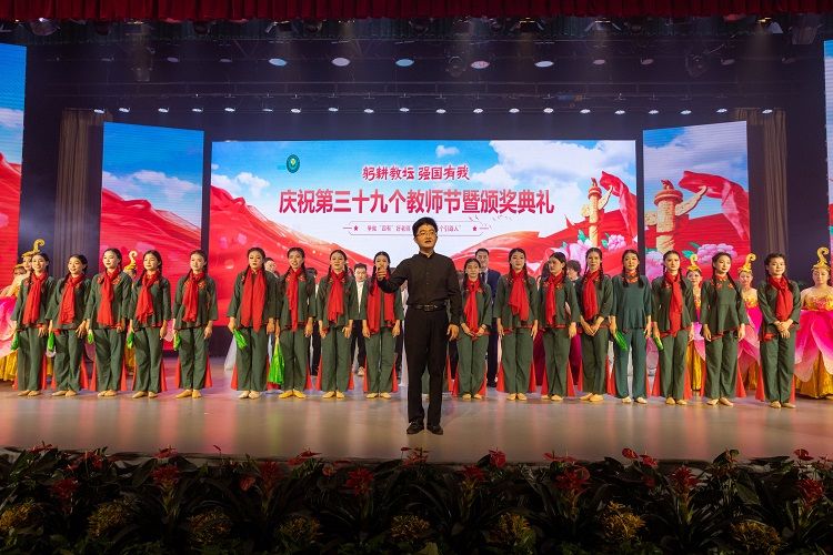 庆祝第39个教师节暨颁奖典礼在全场起立齐唱《歌唱祖国》和热烈掌声中徐徐落幕。(图/新媒体中心 文/王小宝 审核/韩笑)