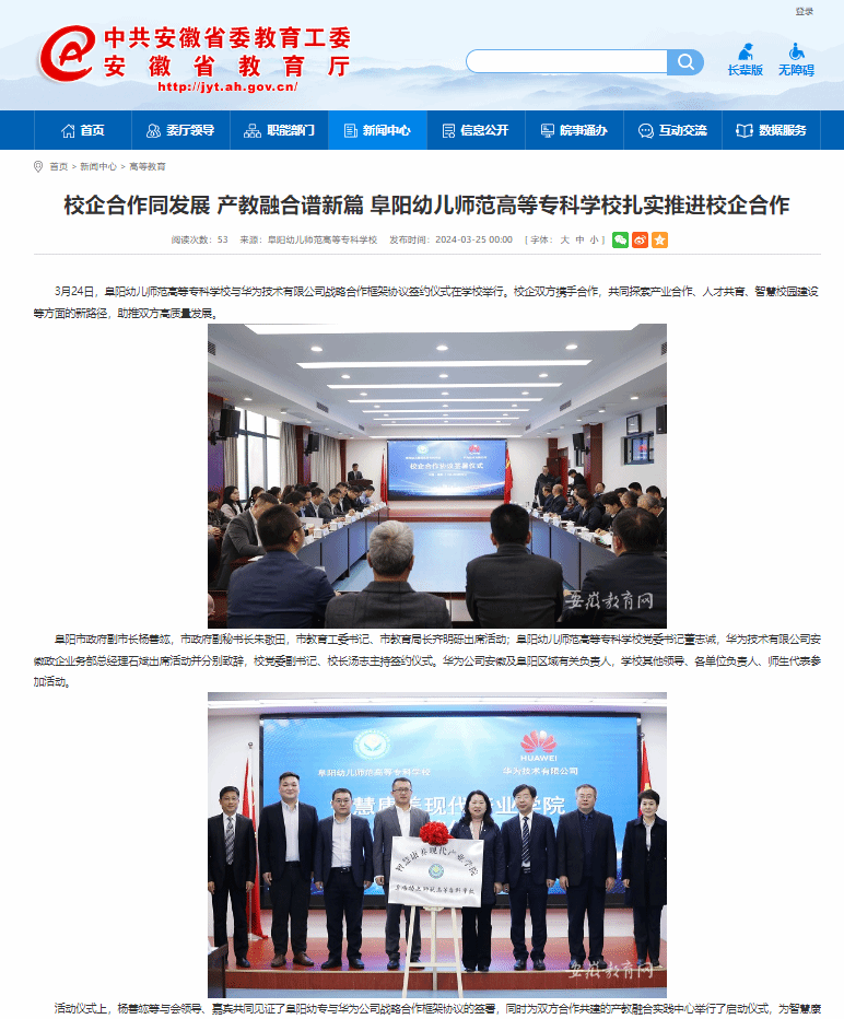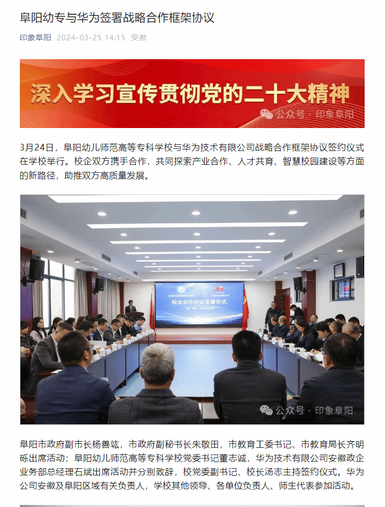 3.印象阜阳:阜阳幼专与华为签署战略合作协议
