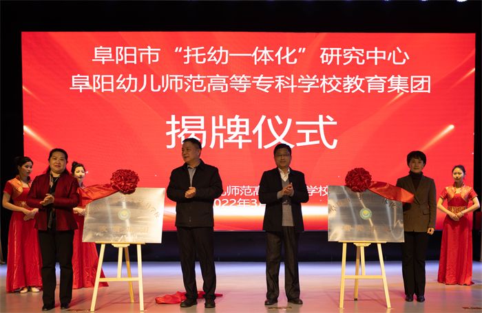 论坛开幕式上,杨善竑、齐明砾、金杰、汤志共同为阜阳市“托幼一体化”研究中心、阜阳幼儿师范高等专科学校教育集团揭牌。
