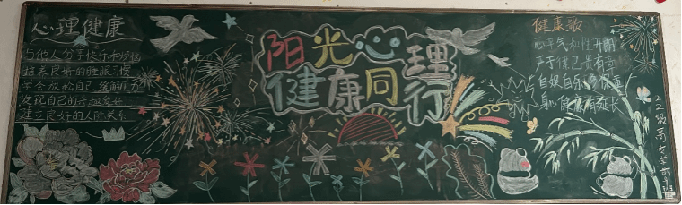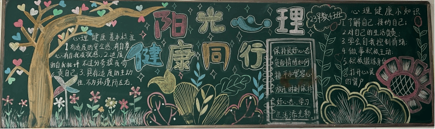 各班级积极响应,纷纷制作了一幅幅内容丰富、版面设计精美、图文并茂的黑板报。这些黑板报内容涵盖了心理健康的重要性、常见心理问题的识别与应对、如何调节情绪、保持积极乐观的心态等多个方面。通过生动的图画、简洁的文字和醒目的标语,同学们将心理健康的理念传递给每一位同学。