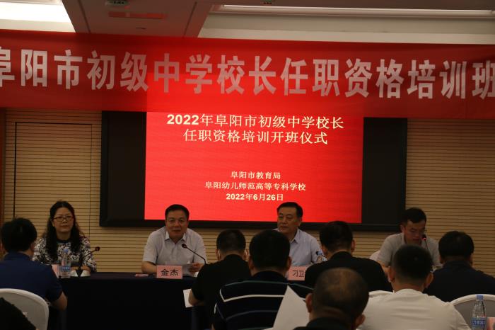 6月26日上午,阜阳幼儿师范高等专科学校承办的2022年阜阳市初级中学校长任职资格培训班举行开班典礼,阜阳市人大常委会副主任、校党委书记金杰,阜阳市委教育工委书记、市教育局局长刁卫华出席开班典礼,阜阳市教师发展中心、学校继续教育学院(基础教学部)负责人,以及来自阜阳市各县区(市)的50余名校长参加开班典礼。开班典礼由学校继续教育学院(基础教学部)负责人张军强主持。