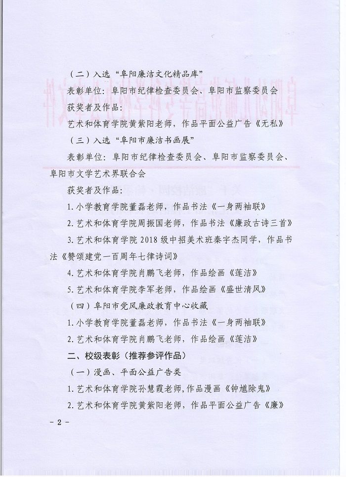 董磊 肖鹏飞作品被阜阳市党风廉政教育中心收藏