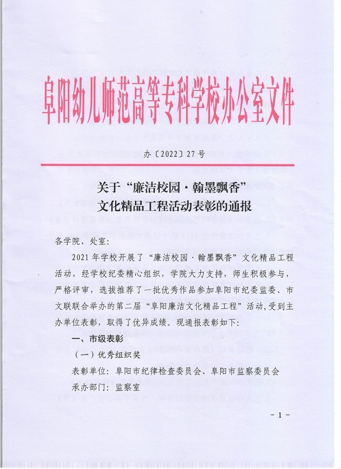 关于“廉洁校园·翰墨飘香”文化精品工程活动表彰的通报