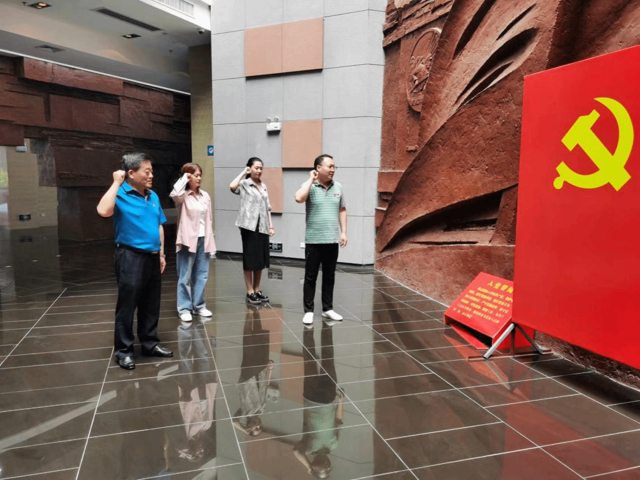 参观结束后,校纪委副书记、监察室主任郑长胜在纪念馆出口处的党旗前带领大家重温入党誓词。