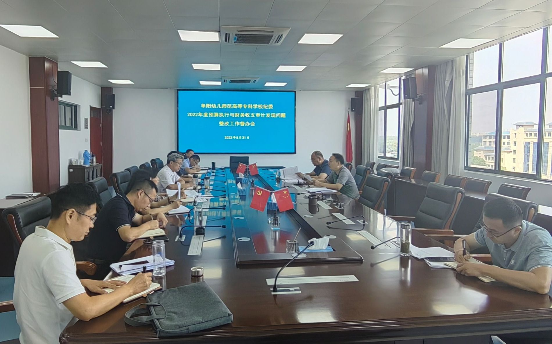 8月31日上午,阜阳幼儿师范高等专科学校纪委召开2022年度预算执行与财务收支审计发现问题整改工作督办会,会议由学校纪委副书记、监察室主任郑长胜主持。