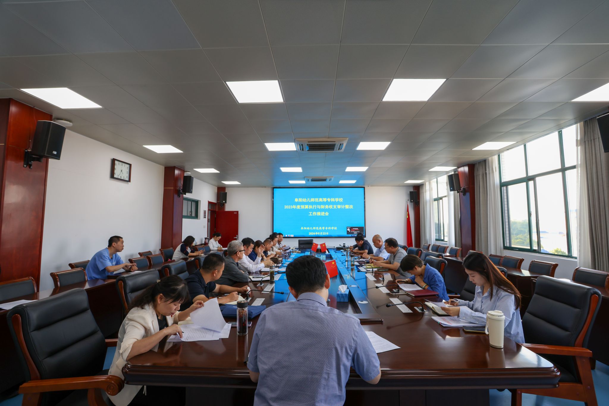 9月23日,2023年度预算执行与财务收支审计整改工作推进会在文津楼602会议室召开,会议由校党委委员、办公室(宣传部)主任(部长)徐常恺主持,纪委副书记、监察室主任、审计整改工作领导小组办公室副主任郑长胜讲话,审计整改工作领导小组办公室在校成员、各整改责任单位主要负责人及具办人参加。