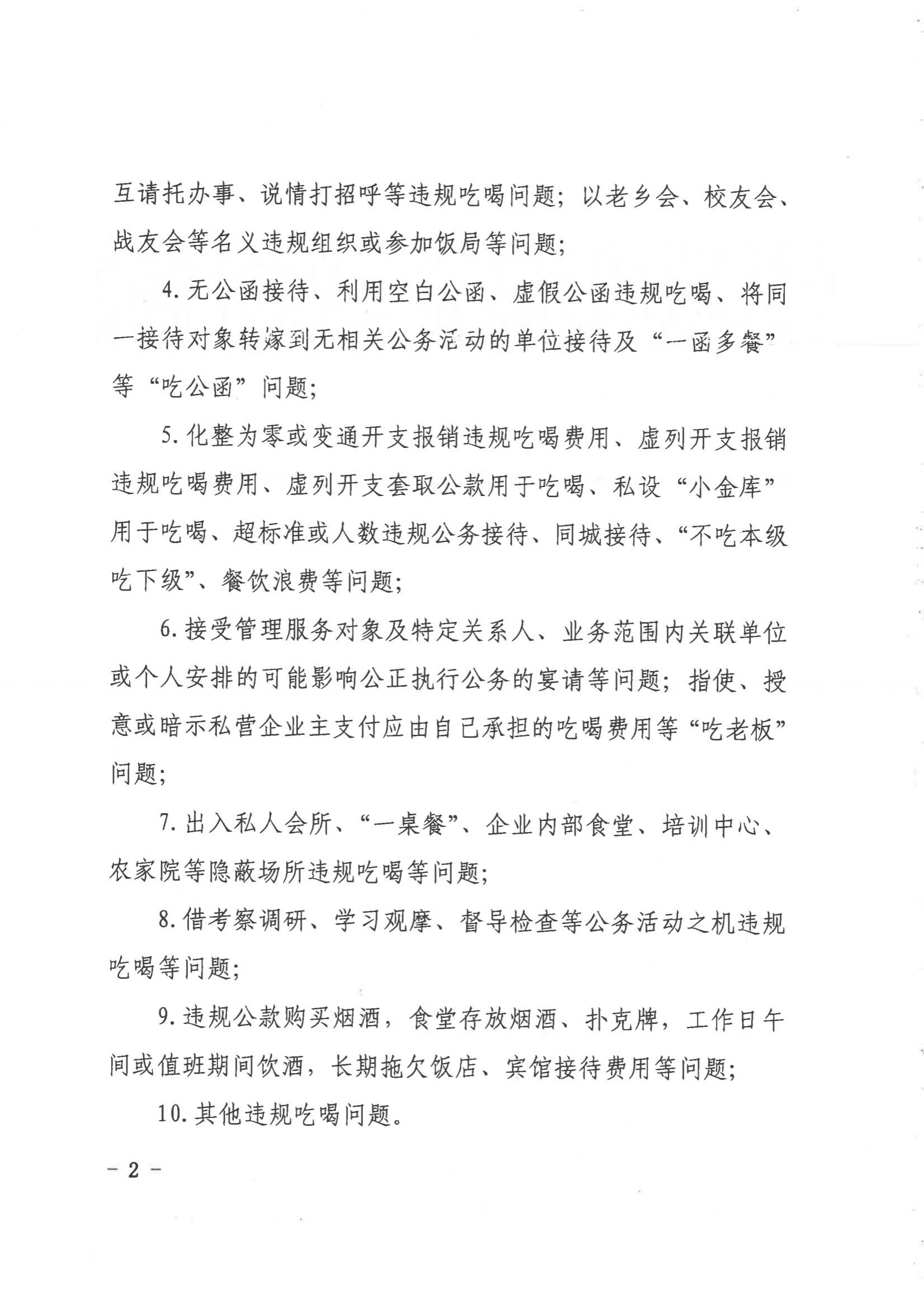 关于印发《开展违规吃喝问题专项整治的工作方案》的通知
