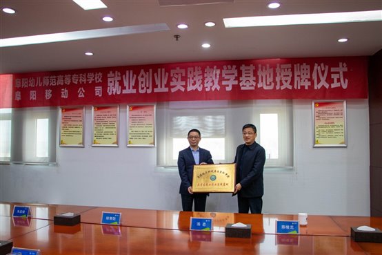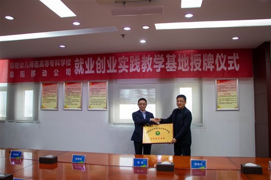 座谈结束后,汤志与孙卫祥共同为阜阳幼儿师范高等专科学校大学生就业创业实践基地和阜阳幼儿师范高等专科学校实践教学基地揭牌。