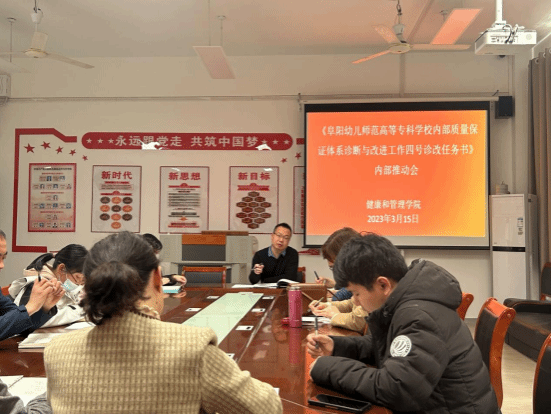 3月15日下午,健康和管理学院召开《教学诊断与改进四号任务书》内部推进会,学院负责人严岳峰主持会议,副院长王兴宏、教学秘书彭晓风、各教研室主任、专业带头人等参加。