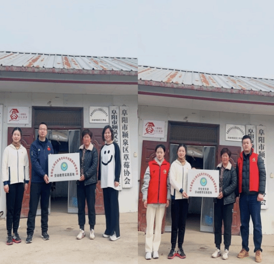 最后,双方举行劳动教育实践基地挂牌仪式。健康和管理学院负责人严岳峰、学生党支部书记王莉娜与火营果蔬专业合作社负责人共同为“健康和管理学院劳动教育实践基地”“健康和管理学院学生党支部劳动教育实践基地”挂牌。