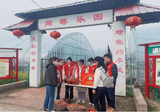 之后,学生支部的党员教师和学生作为志愿者在草莓园前开展了宣传销售活动,进一步了解了农民的日常生活状态和需求。
