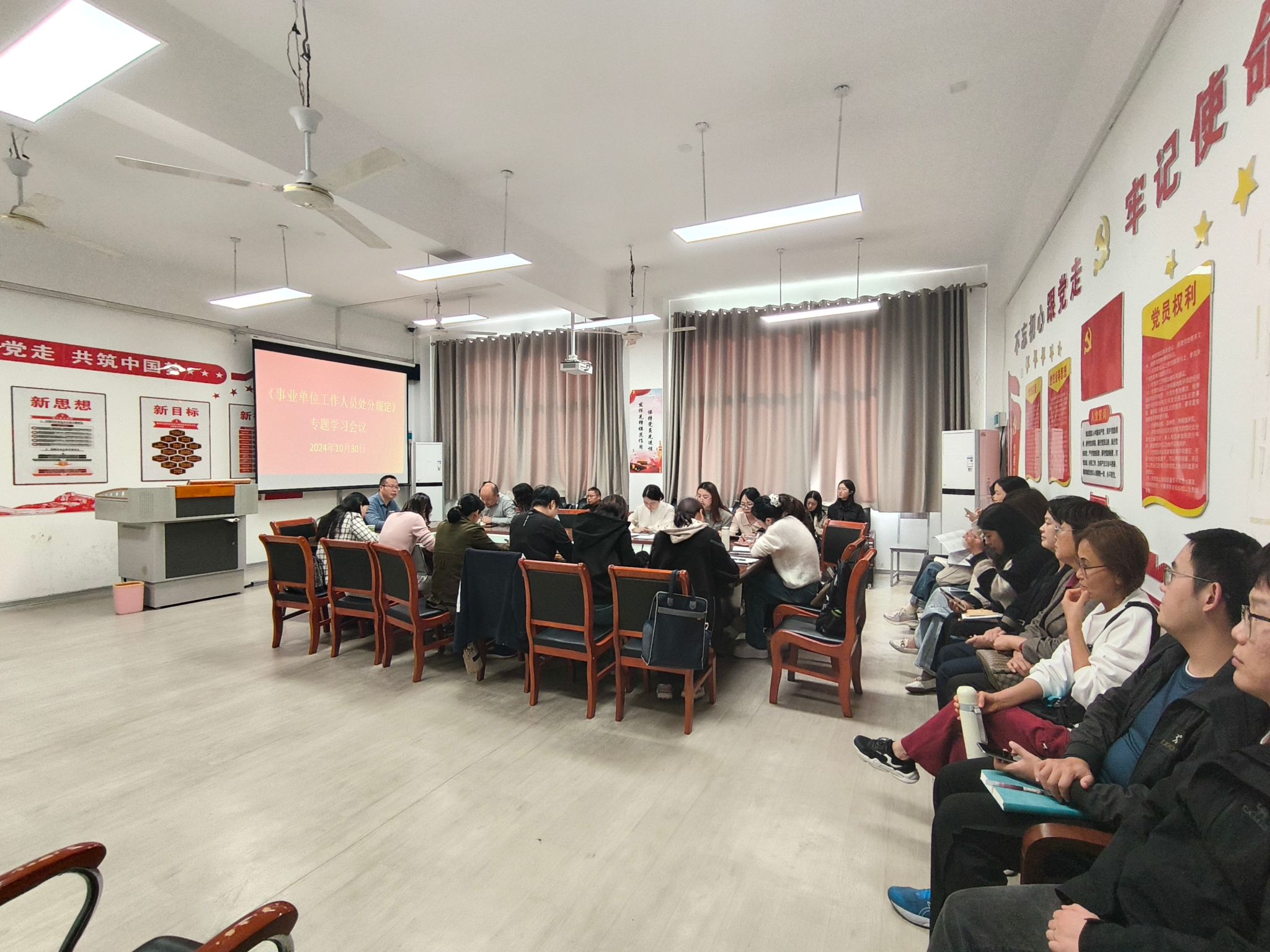 为规范学院教职员工行为,进一步加强学院教职员工依法履职能力,按照学校要求,健康和管理学院于10月30日下午在学院会议室召开《事业单位工作人员处分规定》专题学习会议。本次会议由健康和管理学院负责人、党总支副书记严岳峰主持,全院教职员工参加。
