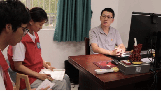 随后,在采访中分村党总支书记苏清芬时,她向队员们介绍了中分村依托“红色资源”大力发展“红色研学”和“生态旅游”产业,鼓励动员村民开民宿、办餐馆,走共同富裕之路。而来自安徽师范大学的驻村第一书记赵华杰为帮助同学们更好地了解村情、民情详细介绍了中分村近几年的发展变化,以及中分村发展遇到棘手的问题时采取的措施。