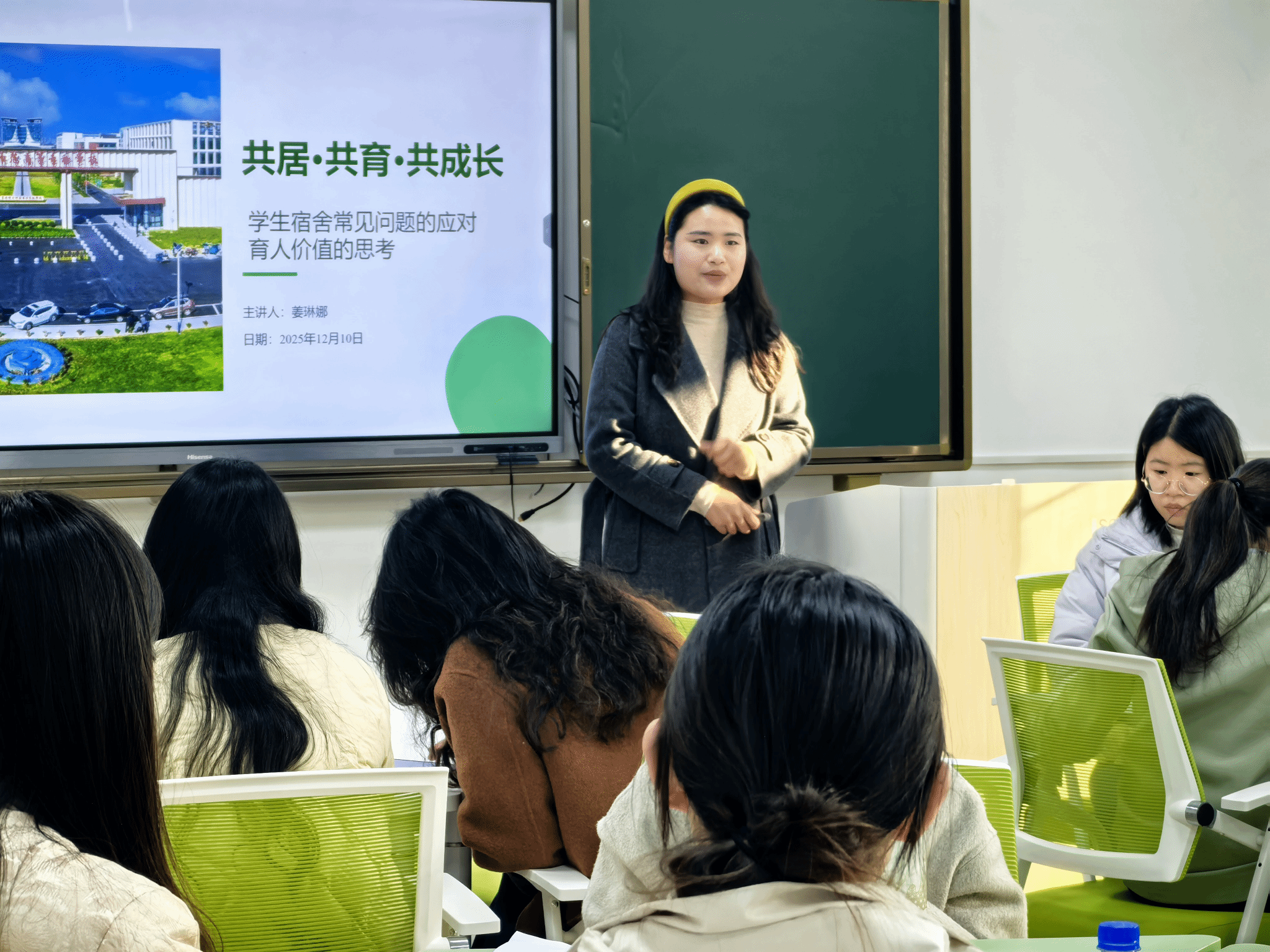 本次沙龙聚焦学生宿舍这一育人前沿阵地,内容翔实。姜琳娜首先通过剖析学生宿舍矛盾的典型案例,警示宿舍安全管理的严峻性与早期介入的重要性。随后,她系统分享了“查寝打卡”安全机制的建设意义与“换寝”申请背后的处理智慧,引导大家思考如何将日常管理转化为育人契机。沙龙深入解析了宿舍常见的六大矛盾类型,并提供了从学生自助到辅导员介入的清晰解决路径。