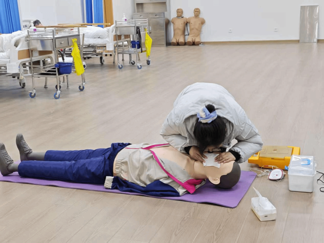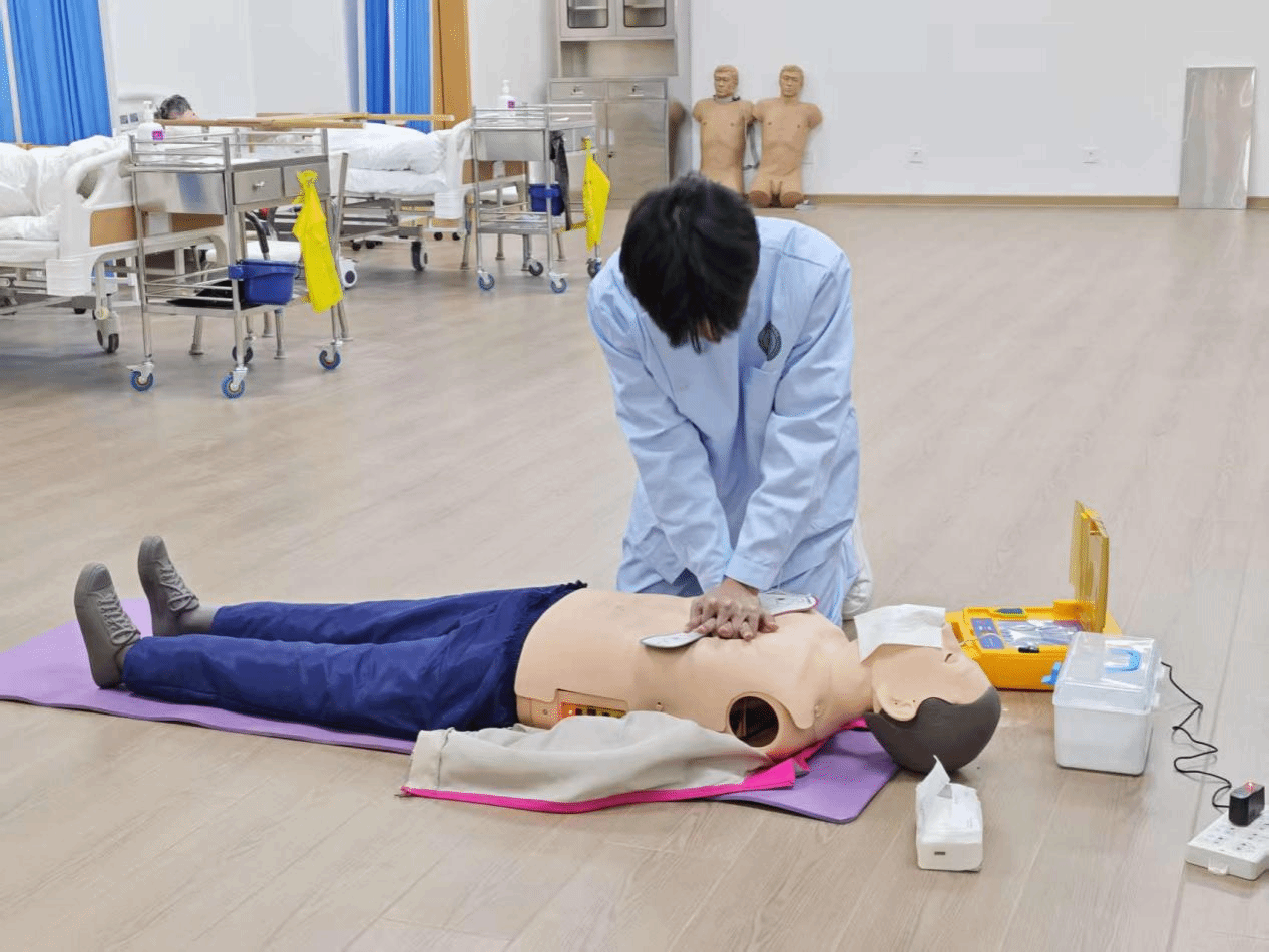 心肺复苏操作中,学生能精准定位按压部位,以标准姿势完成深度、频率符合要求的胸外按压。