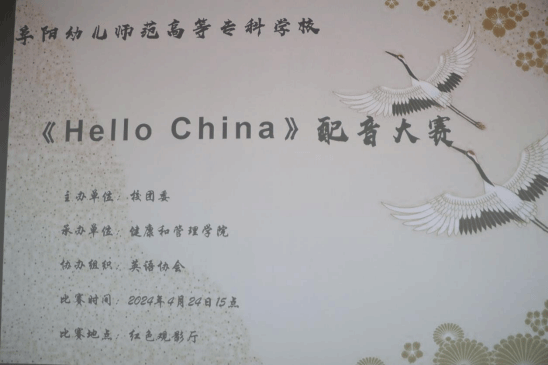用声音传递对语言的热爱,用情感诠释对文化的理解。4月24日到4月25日,由校团委主办,健康和管理学院承办,英语协会协办的“声广韵长,语传古今 —《Hello,China》配音大赛”在我院成功举办。