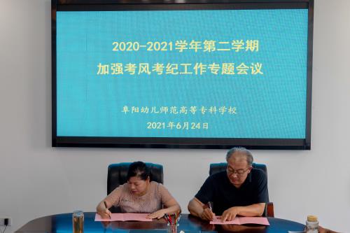 随后陈绪龙与各学院院长签订考风考纪承诺书,他强调,期末考试是检验“教”和“学”的一种手段,好的考风是良好学风的前提。他要求各学院一要高度重视,认真组织好本学期期末考试工作;二是加强对考生和教师的考风考纪宣传教育,营造良好的考试氛围;三是在考试期间,校督导室会同教务处、学生处、监察室将对考试过程进行全程监督考核。相信通过全体教师的共同努力,此次期末考试定能取得满意的答卷!