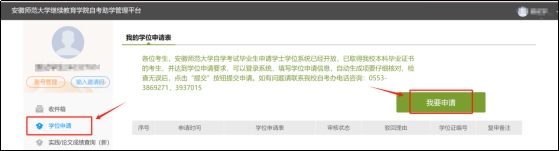 (1)我的学位申请页面 ,可查看目前审核状态以及学校审核意
