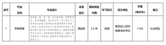 阜阳幼儿师范高等专科学校高等学历继续教育属于国民教育系列,列入国家招生计划,国家承认学历(成人高等教育学历)。考生参加成人高等学校招生全国统一考试(简称成人高考),由各省、自治区、直辖市统一组织录取。