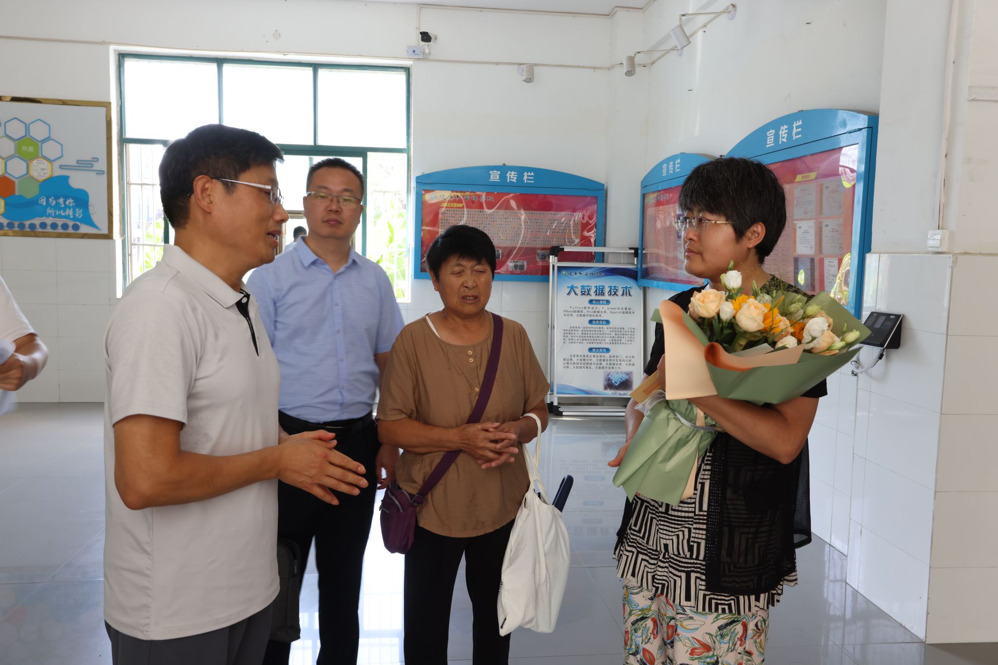 在小学教育学院,校领导向师德标兵董磊、余广清和刚做完手术的张继清老师送上鲜花和节日祝福,感谢他们为学校的建设发展作出的贡献,希望老同志保重身体,一如既往地关注支持学校发展,发挥“传帮带”作用,继续为教育事业奉献余热。