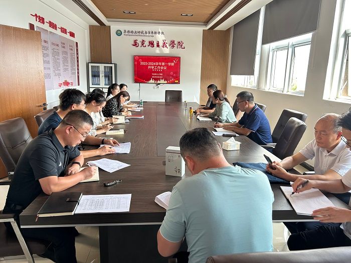 2023年8月29日下午,马克思主义学院召开2023-2024学年第一学期开学工作会议,安排部署新学期教学工作。马克思主义学院党支部书记、院长何丽娜主持会议,学院全体教师参会。