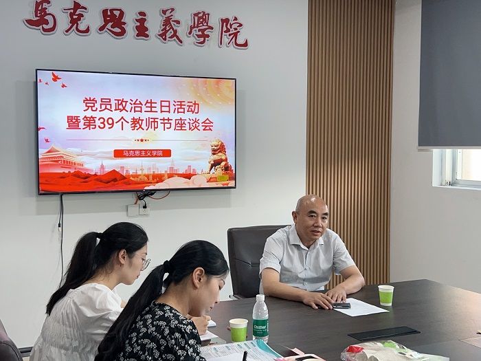 9月8日,为弘扬中华民族尊师重教的传统美德,激励广大教职工热爱教育事业,在第三十九个教师节来临之际,校党委副书记于华献来到马克思主义学院慰问思政课教师,给马克思主义学院教职工带来学校的关心和节日的问候。于华献还参加了马克思主义学院于9月6日开展的庆祝教师节座谈会暨党支部党员政治生日活动等系列庆祝活动。