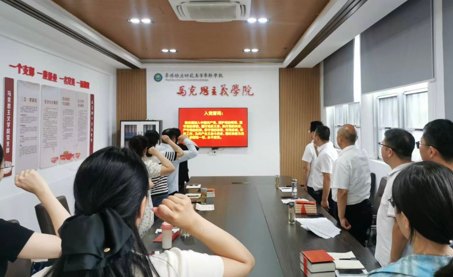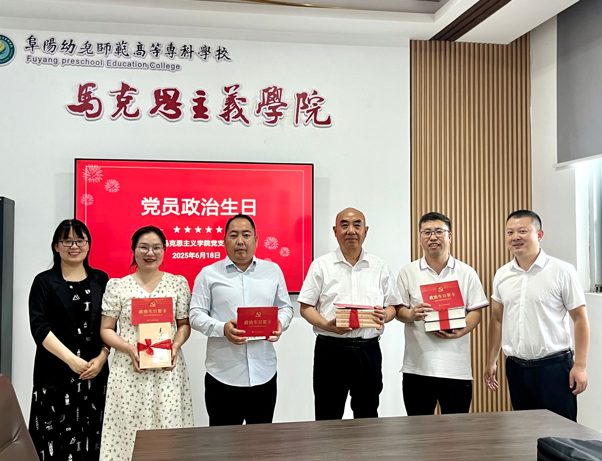 随后,学院为近期过党员政治生日的教师们举办了别具意义的庆祝活动。在鲜红的党旗面前,全体党员庄严举起右拳,齐声重温入党誓词。那铿锵有力的宣誓声,充分展现出党员们对党的忠诚以及为教育事业拼搏奉献的决心。