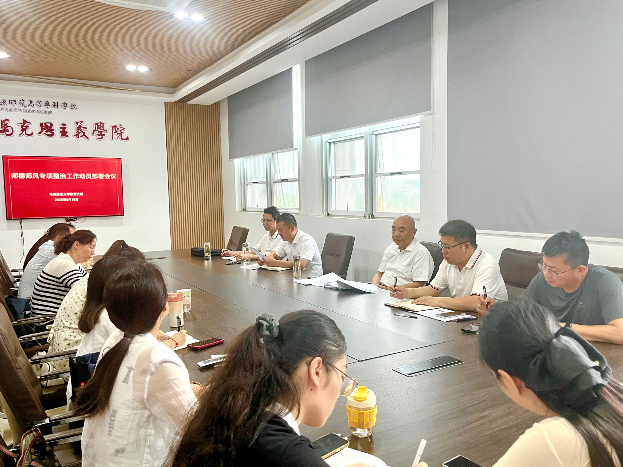 会议伊始,漆学鹏带领全体人员深入学习了《阜阳幼儿师范高等专科学校师德师风专项整治工作实施方案》。该方案明确了整治工作的目标、任务及具体要求,旨在通过专项整治,全面排查并解决师德师风方面存在的突出问题,建立健全长效机制,引导广大教师坚定理想信念、陶冶道德情操、夯实学识根基、涵养仁爱之心,树立良好的教师形象。