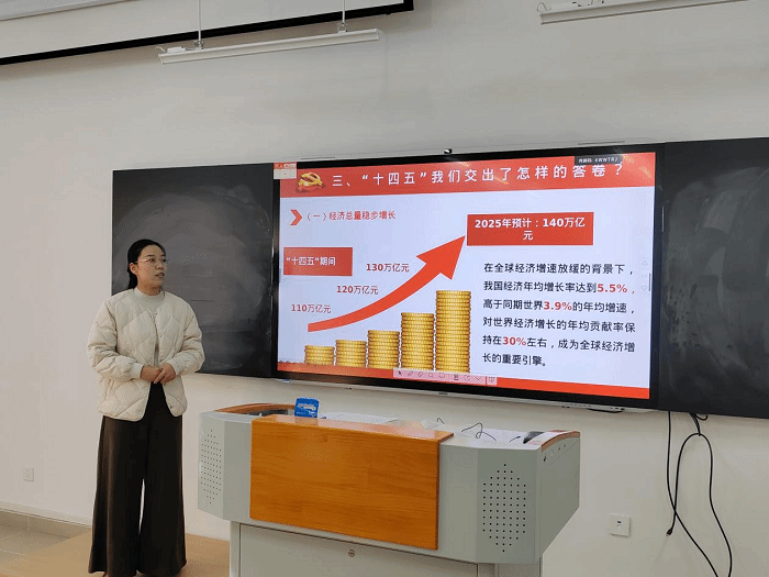 活动中,微宣讲团第五组以“深悟二十届四中全会精神实质  扛起‘十五五’奋进新使命”为主题,五名宣讲员分别围绕“党的二十届四中全会的内涵是什么”“总书记为何如此重视‘十五五’规划编制”“‘十四五’我们交出了什么样的答卷”“党的二十届四中全会究竟擘画了什么样的未来蓝图”“贯彻落实党的二十届四中全会精神的实践路径”五个方面作了深入解读,从理论遵循和现实要求出发,紧密联系党情、国情、世情以及现代化建设实践,系统阐释了全会精神的时代价值、重要意义和实践路径,激励广大师生坚定理想信念,坚持守正创新,勇担时代使命。