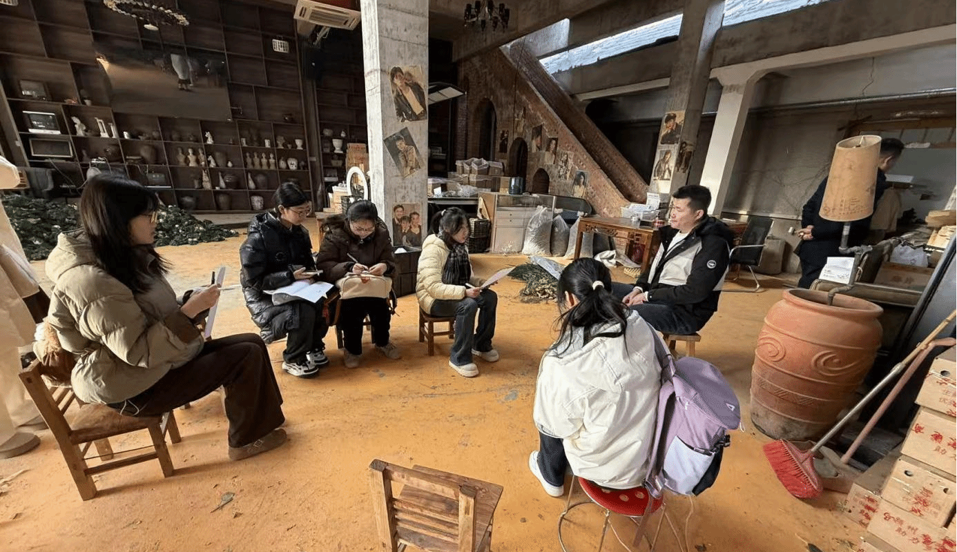 为全面解码党建引领乡村振兴的实践路径,师生们以党小组为核心分成三组展开深度调研,用脚步丈量乡土,用细节感知党建引领下的乡村变迁:与直播负责人面对面交流,详细了解直播全流程运作细节;深入农家院落,与村民拉家常、话变迁,从家庭收入的增长、村庄环境的改善,到文化生活的丰富,全方位倾听乡村发展的一线心声,感知村民幸福感的真切提升;走进田间地头与打包车间,完整探寻农产品从种植培育到分拣打包、物流发货的全产业链条,深入思考产业升级与可持续发展的关键路径。