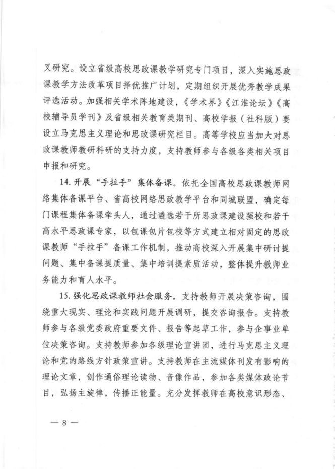 51.支持思政课教师参与各级党政部门重要文件、工作报告等起草工作,参与企事业单位决策咨询 | B |