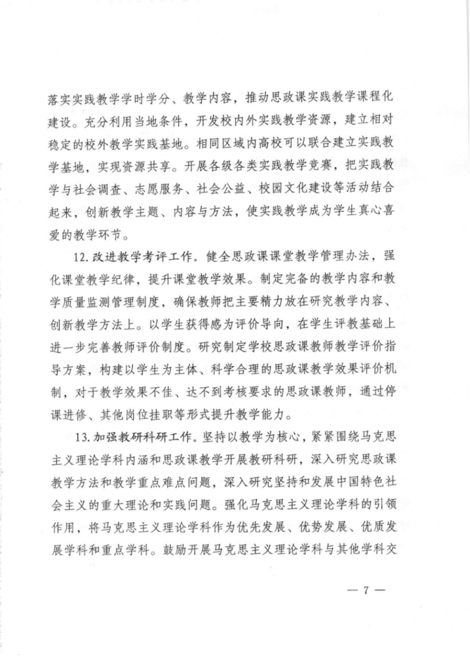 30.以学生获得感为评价导向,注重教学效果评价,增加教学研究和教学成果在评价体系中的权重。思政课教学评价结果作为思政课教师绩效考核、职务(职称)晋升、评奖评优的首要依据 | A* |