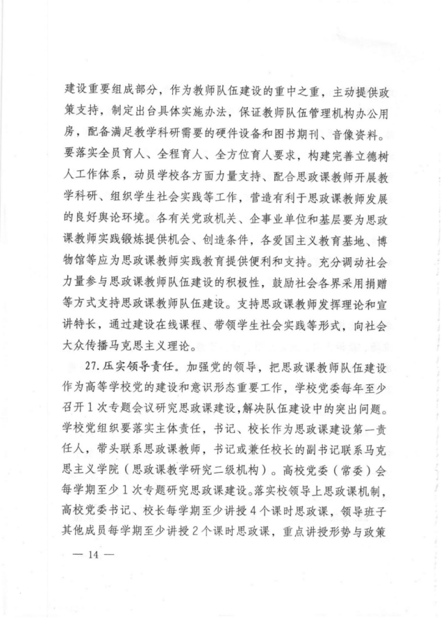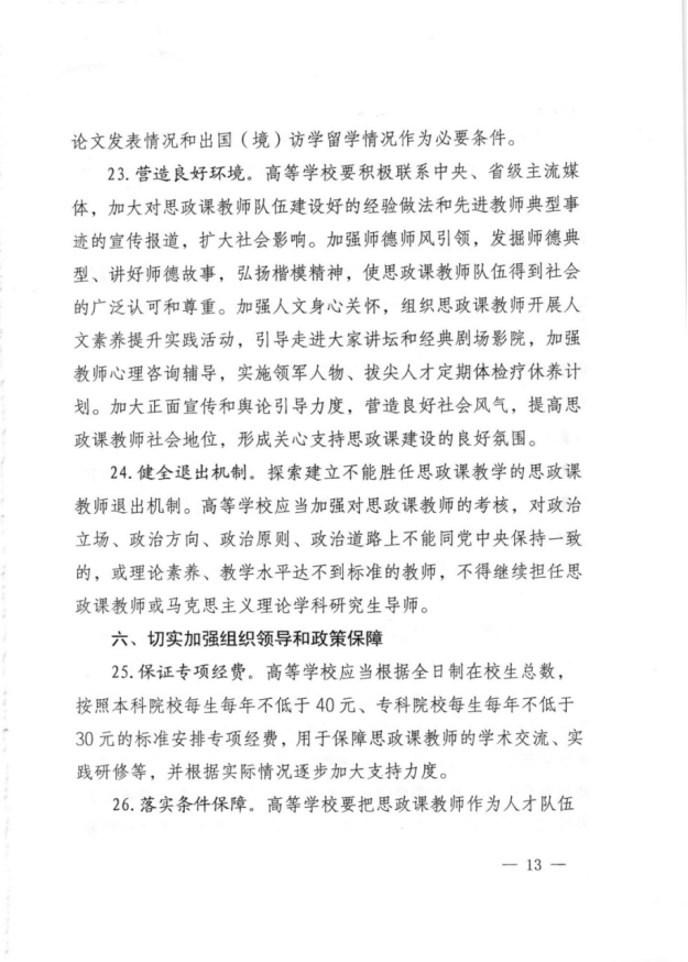 38.建立思政课教师退出机制,对出现政治立场倾向问题、师德师风问题、不适合继续从事思政课教学的人员,第一时间退出思政课教师队伍;造成严重不良影响的,要依法依纪依规严肃处理 | A* |