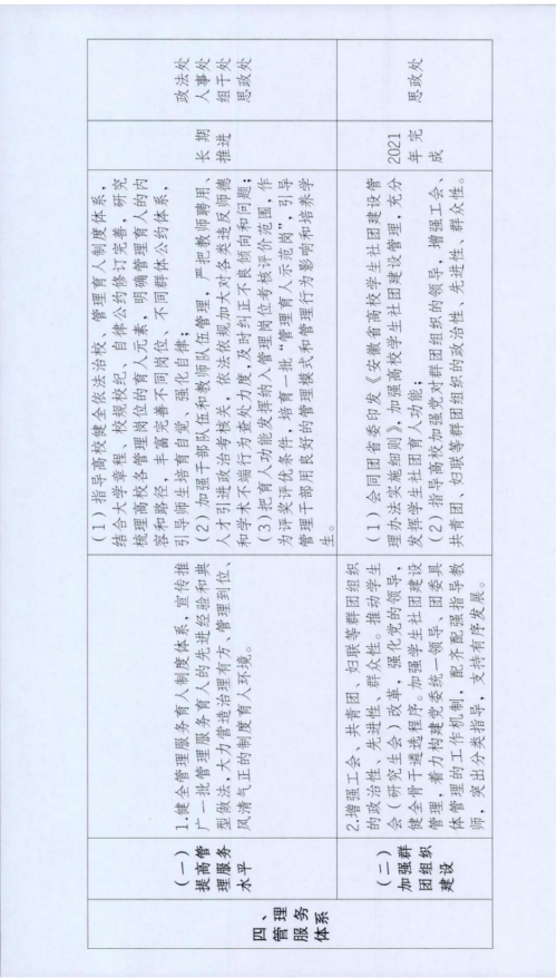 2.把抓好党建工作作为办学治院的基本功,加强党的领导,进一步发挥学院党委(党总支)的政治核心作用,履行政治责任,保证监督党的路线方针政策及上级党组织决定的贯彻执行。坚持民主集中制,健全完善学院党组织会议和党政联席会议制度,有关干部任用、党员队伍建设等工作,由党组织会议研究决定,涉及办学方向、教师队伍建设、师生员工切身利益等重大事项,党组织先研究再提交党政联席会议决定。健全学院集体领导、党政分工合作、协调运行的工作机制,提升班子整体功能和议事决策水平。 |