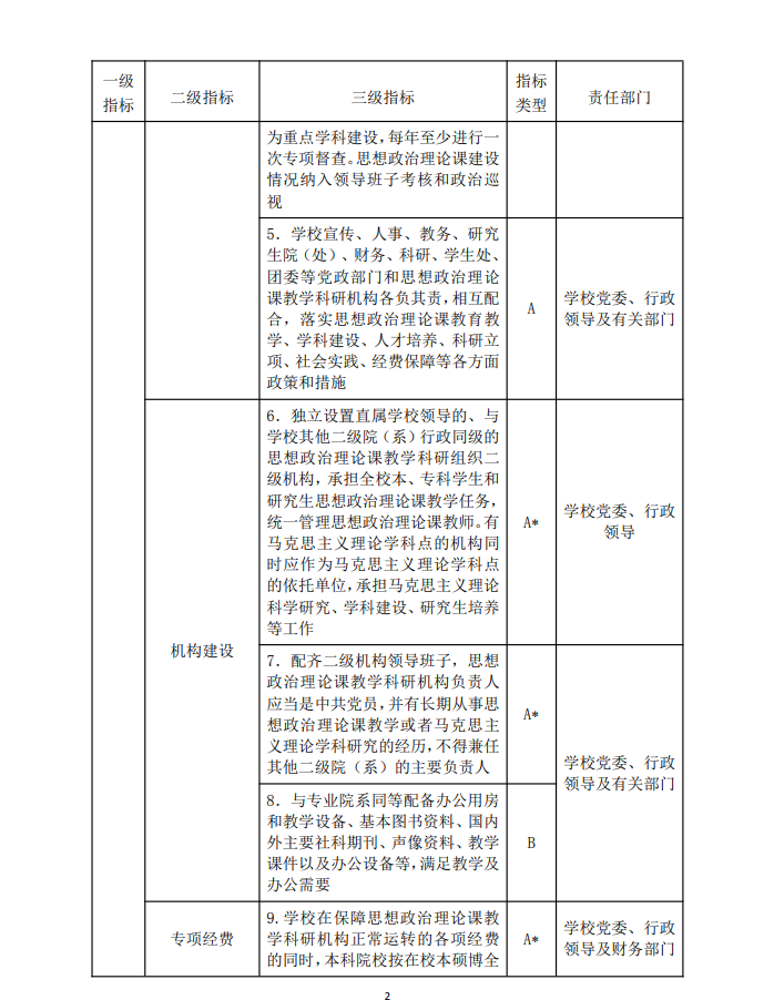 机构设置 | 9.坚持“马院姓马,在马言马”的鲜明导向和办学原则,擦亮我国大学最鲜亮的底色,马克思主义学院统一开设全校思政课、统一管理思政课教师、统一负责马克思主义理论学科建设,巩固马克思主义在高校意识形态领域的指导地位 | B |
