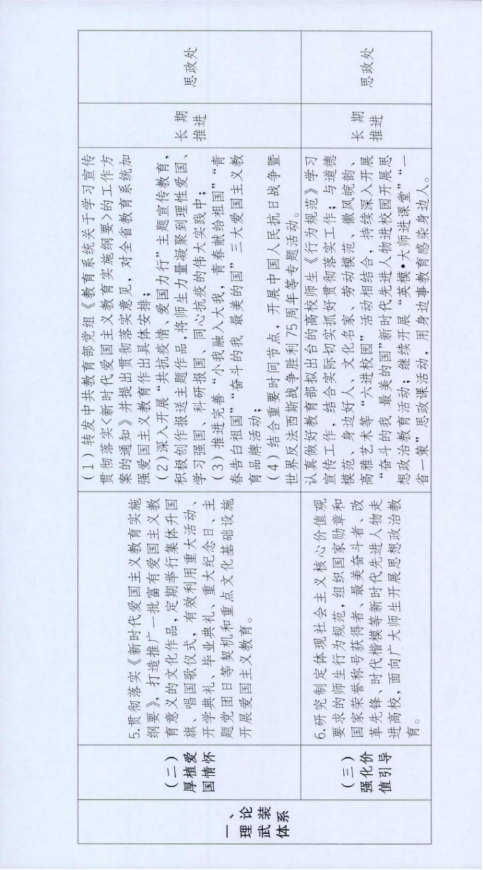 5.充分发挥思想政治理论课的主渠道作用,充分发掘和运用各学科专业蕴含的思想政治教育资源。 |