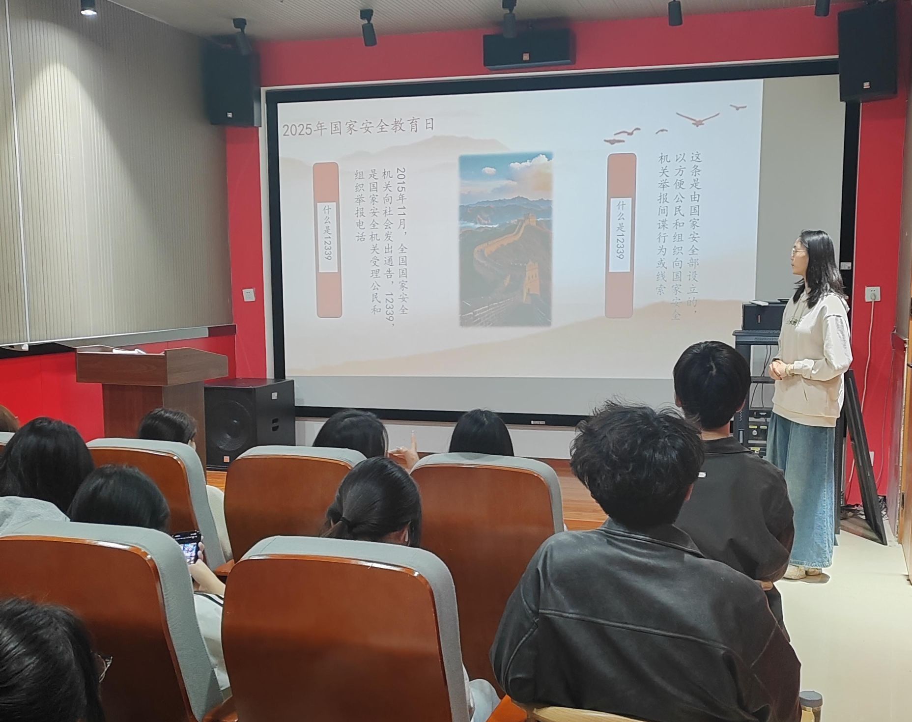 4月15日,第十个全民国家安全教育日来临之际,马克思主义学院积极响应号召,充分利用课前“一课一品”时间,将国家安全教育融入课堂教学,深入贯彻总体国家安全观,推动国家安全宣传教育进课堂、进学生头脑,切实提升学生国家安全意识和素养。此次活动也是四月份党员活动日的重要组成部分,充分体现了党建与业务的深度融合。