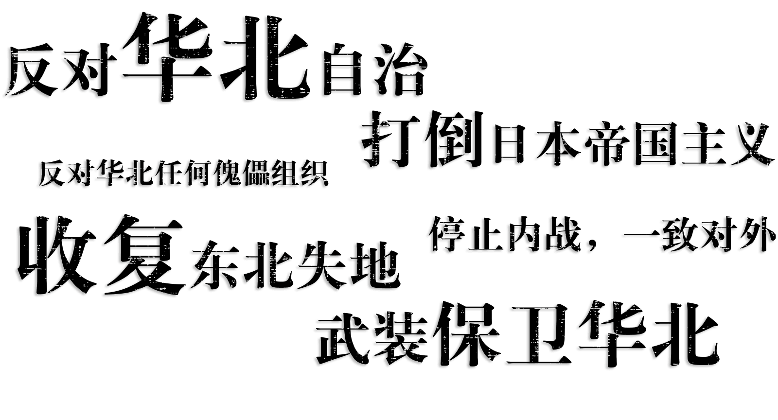 华北事变后,中日民族矛盾进一步激化。在中国共产党关于救亡图存、全民抗战的号召和中共地下党组织的领导下,1935年12月9日,北平学生举行声势浩大的抗日游行,喊出“反对华北自治”、“打倒日本帝国主义”、“停止内战,一致对外”等口号,遭到国民党军警镇压。12月16日,北平学生和市民1万多人在天桥召开市民大会。会后,举行了更大规模的示威游行。年轻学生们的英勇赤诚在全国范围内点燃了救亡运动的熊熊烈火,全国各地纷纷行动起来响应北平。天津、南京、武汉、广州、长沙、太原等各大城市,先后爆发了学生抗日集会和示威游行。各地工人在全国总工会的号召下组织罢工,支援学生斗争。各地爱国人士和爱国团体也相继成立救国会,发出通电,出版救亡刊物。一二·九运动逐渐超出了学生运动的范畴,变成了全体国民的爱国救亡运动。