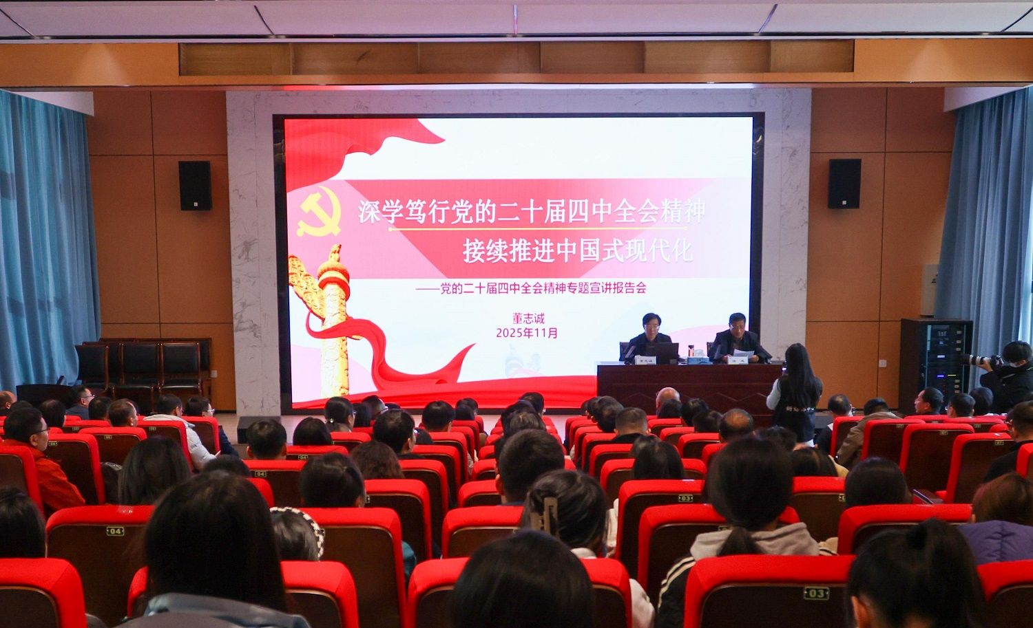 为深入学习贯彻党的二十届四中全会精神,11月21日,校党委书记董志诚以“深学笃行党的二十届四中全会精神,接续推进中国式现代化”为主题,为全校师生代表作专题宣讲报告。学校领导班子成员、中层副职以上党员干部、教师和学生代表参加。