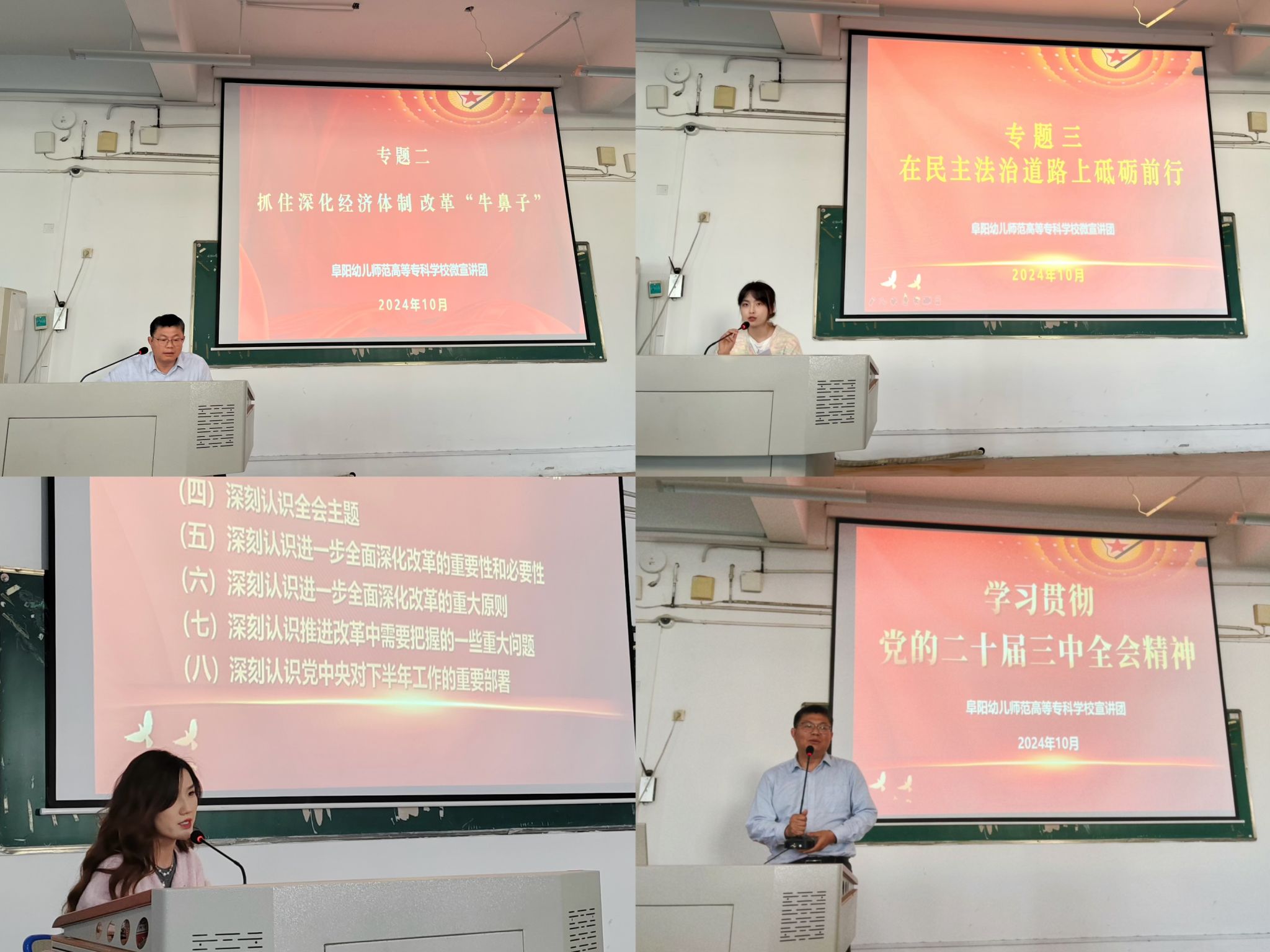 为深入学习宣传贯彻党的二十届三中全会精神,校办公室(宣传部)、马克思主义学院组织宣讲团在校内开展一系列宣讲活动宣讲团成员们通过深刻的理论阐述、生动的案例讲解、详实的数据分析和深刻的理解剖析,不断推动全会精神入脑入心、落地生根