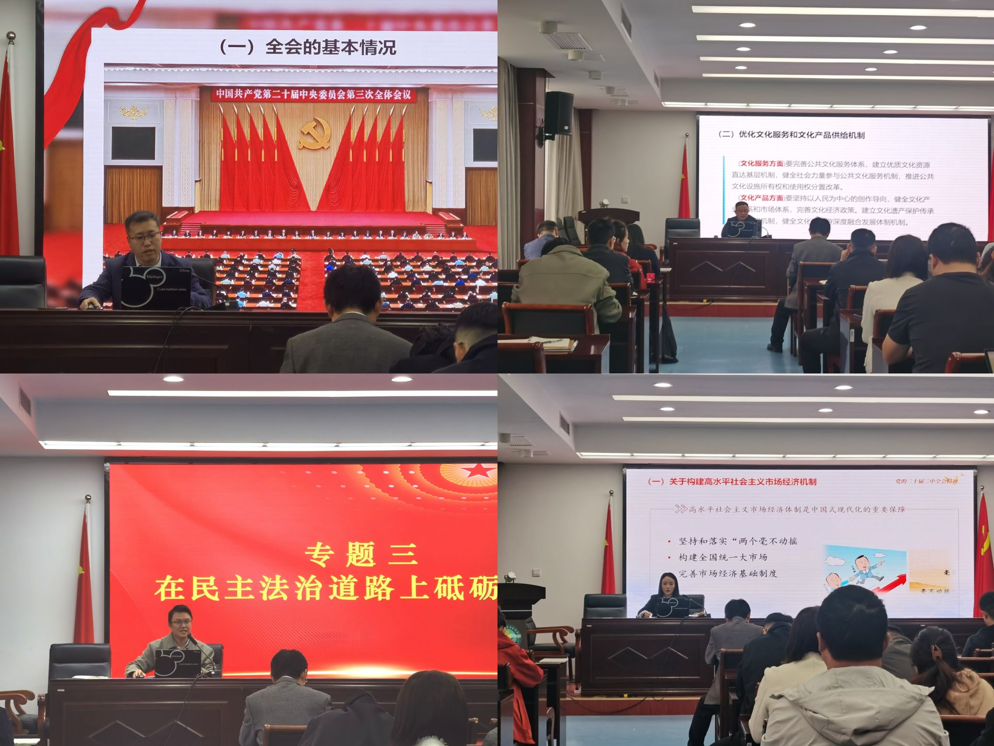 本次宣讲共分为五个专题,分别为深刻学习领会党的二十届三中全会的重大意义”“抓住深化经济体制改革牛鼻子’””在民主法治道路上砥砺前行””满足人民对美好生活新期待””全力以赴抓好全会精神贯彻落实