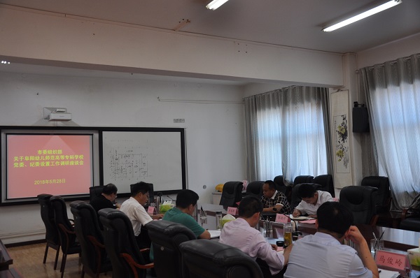 5月28日下午,市委组织部综合科科长时春柳、市委组织部企事业干部科科长郭颖升到我校调研党委、纪委设置工作,并召开座谈会。党委副书记、校长汤志,党委委员、纪委书记孙驰,党委委员、副校长陈绪龙出席会议,校领导王刚、马俊岭及部分支部书记参加座谈会。座谈会由汤志主持。
