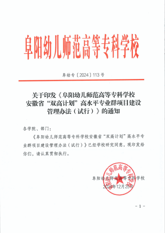 关于印发《阜阳幼儿师范高等专科学校安徽省“双高计划”高水平专业群项目建设管理办法(试行)》的通知