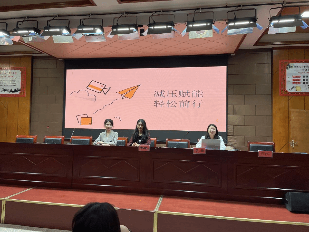 在中高考来临之际,为给中高考学生缓解备考压力,使同学们能有一个良好的考前心理和积极的备考状态,缓解毕业生考前的心理压力。2023年5月10日,在颍州区共青团团委的组织下,团区委宣传部李晓露干事带领我校心理健康中心李娜老师和杨方贝老师在大田中学开展了“减压赋能,轻松前行”的大型中高考学生心理减压公益活动,为即将参加中高考的学生开展一场生动有趣的考前心理疏导活动。此次活动覆盖学生人数约200人,参加本次减压活动的是初三高三毕业班的学生。