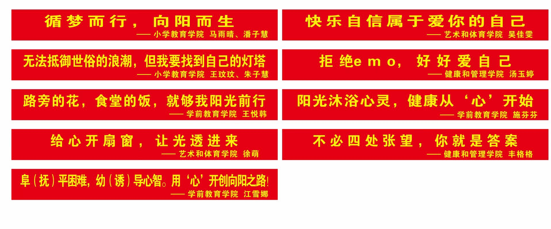 为迎接“525”的到来,形成关注心理健康、了解心理健康的氛围,4月末,小学教育学院承办了“吾以吾语言吾心”——宣传标语制作活动,在广泛宣传下,收到了100余名学生的作品。