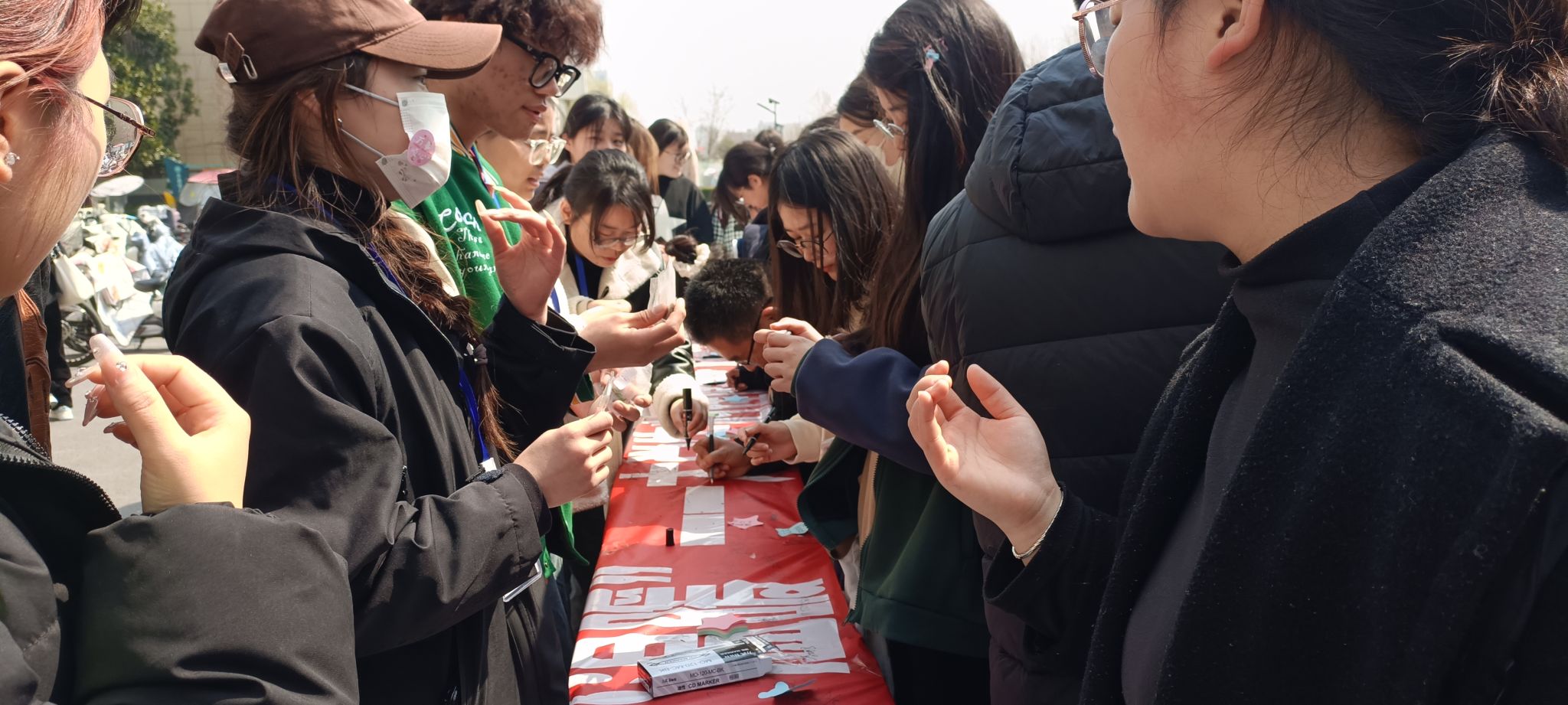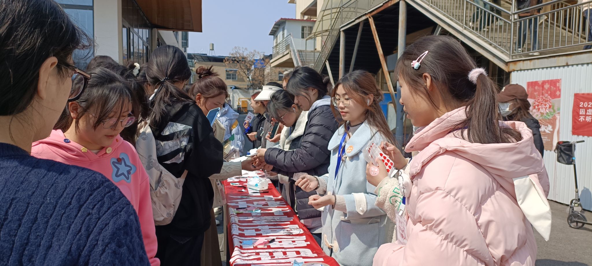 活动现场,吸引不少学生驻足观看、打卡并领取花种。大学生心理健康协会成员为同学们分发花种,并邀请同学们加入QQ群,分享花种后期生长情况。