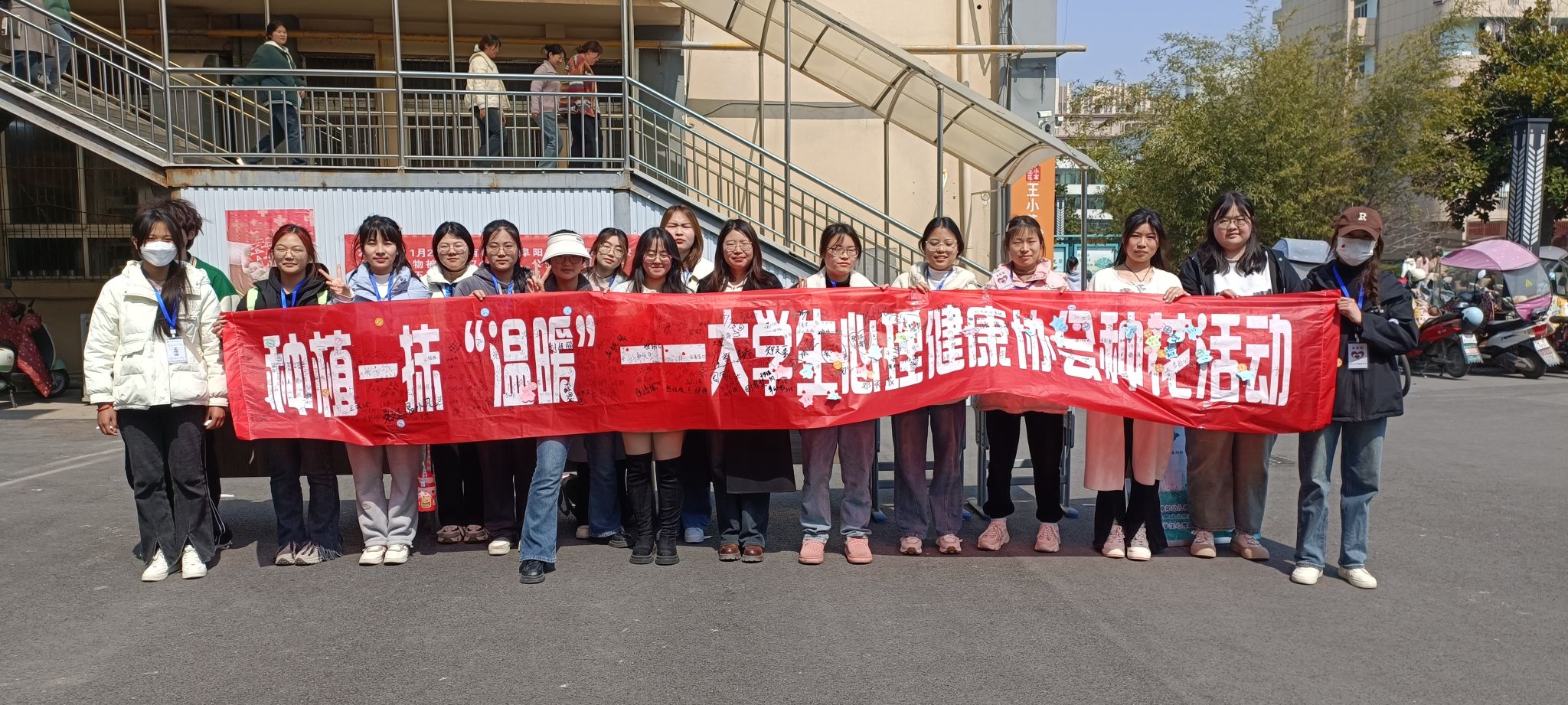 冬去春来,万象更新!为提高大学生心理健康思想认识,增强大学生心理素质,3月12号,学生处、校团委、大学生心理健康协会组织开展“种植一抹温暖”心理健康植树节主题活动。