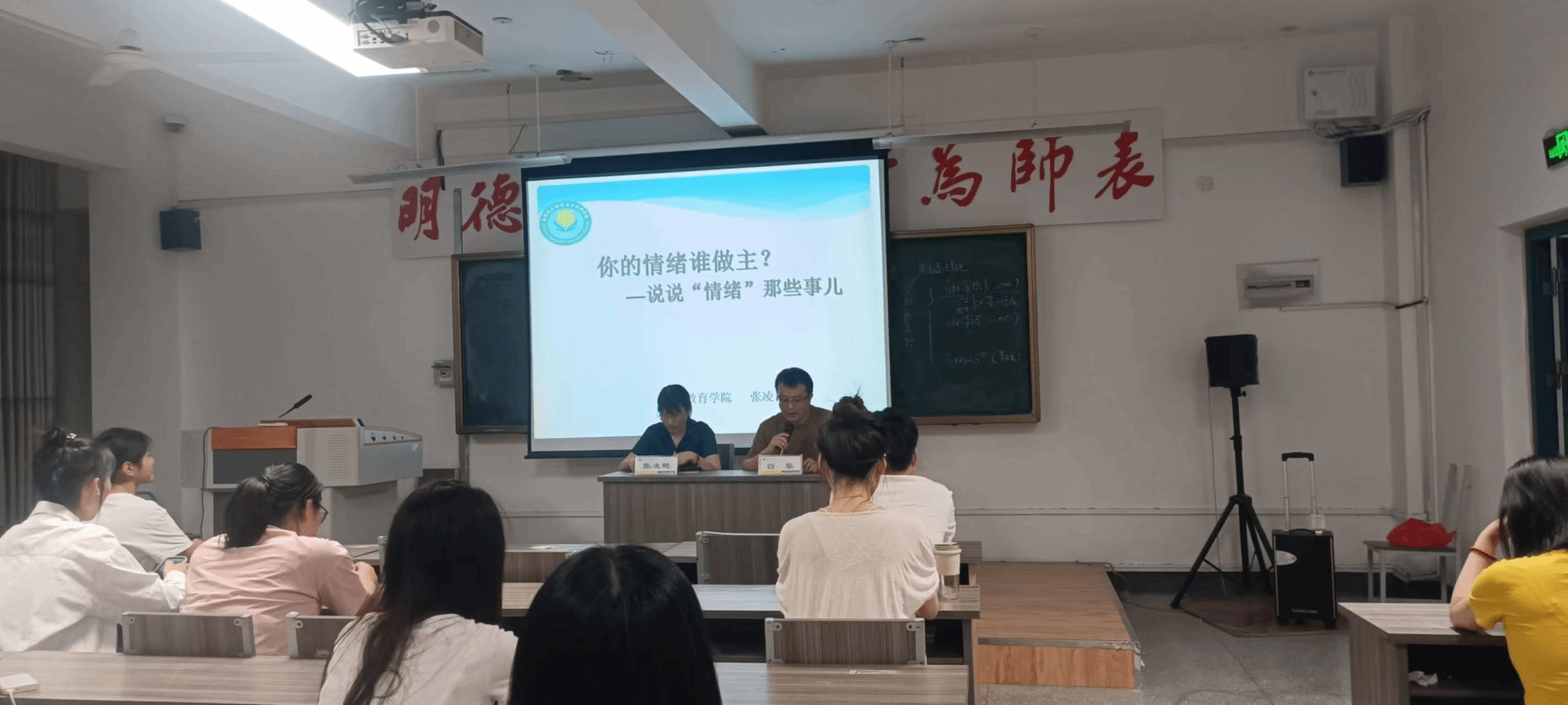 5月23号,学校心理健康教育中心组织开展"你的情绪谁做主?——说说情绪那些事儿"主题讲座活动。本次讲座由校心理健康教育中心兼职教师张凌艳教授主讲,学生处(就业处)副处长白黎等出席。